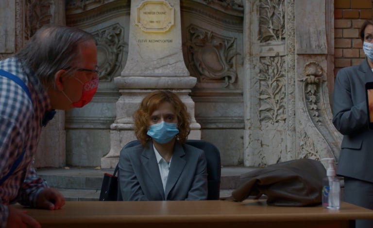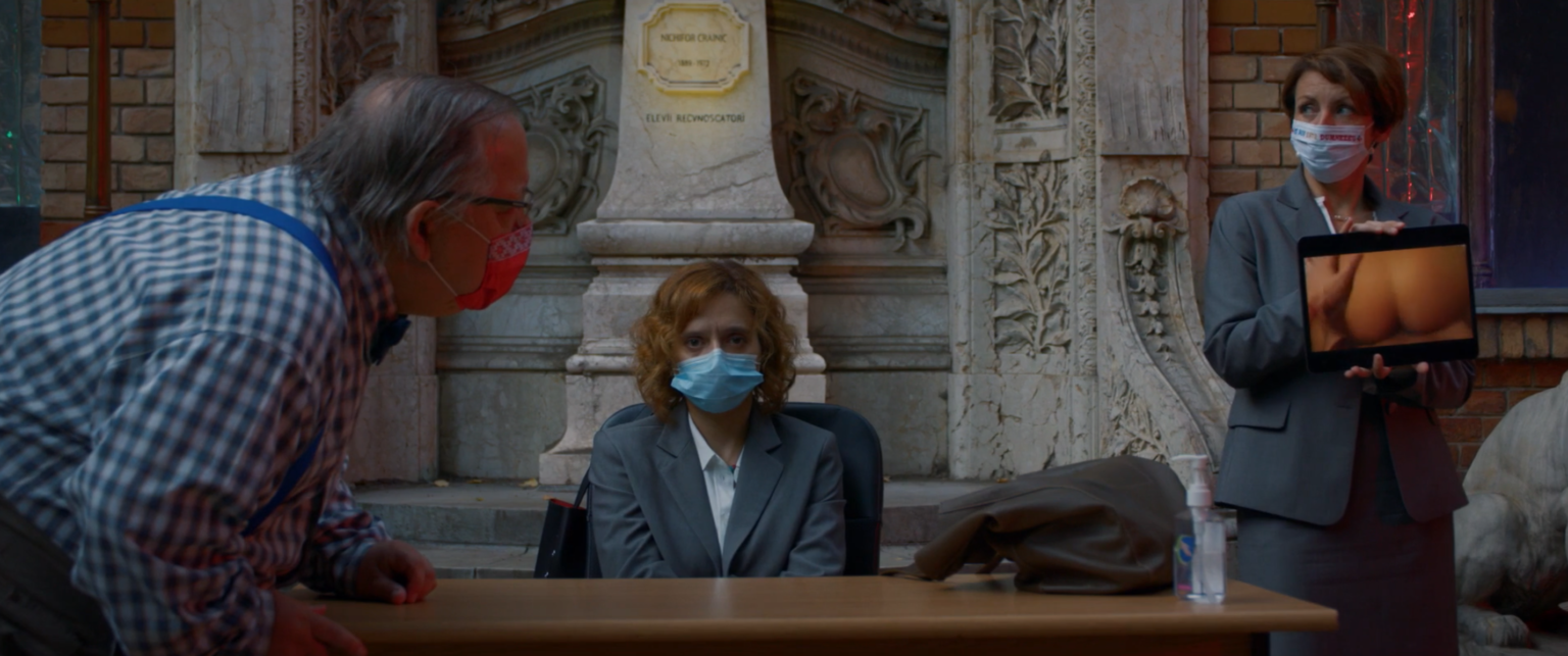 Il capitolo finale, intitolato “Sitcom – Prassi e allusioni”, è un capolavoro di ironia. Emi è arrivata nella scuola dove i genitori dei ragazzi sono già seduti ai loro posti pronti a giudicarla. È qui che tutte le suggestioni raccolte finora trovano sfogo. Distanziati secondo le norme anti-covid, ognuno dei giudici è per questo ancora più enfatizzato nel ruolo stereotipato che ricopre, e come tanti leader d’opinione si esprimono con teorie del complotto e argomentazioni fuori luogo usando come scudo il futuro dei bambini e la morale per celare il proprio imbarazzo. L’argomento centrale del revenge porn non riesce ad essere affrontato con la giusta serietà e viene deriso con battute da liceali. Ma qui viene il bello. Il gioco di specchi messo su da Radu Jude entra in funzione e il processo a Emi diventa un meccanismo secondo il quale a giudicare siamo noi spettatori. Non è il filmino pornografico dell’insegnante ad essere sotto processo. Fra teorie del complotto, negazionismo, accuse di propaganda Lgtbq+/ebraica ed altre castronerie che sembrano esser state tirate fuori dalle peggiori pagine complottiste su Facebook, ad essere messa a nudo è l’incoerenza della natura umana e l’ipocrisia che ne scaturisce. L’oggettività non è altro che un pugno di soggettività condivise. E allora cos’è giusto? La realtà, spogliata di tutte le velleità che la ricoprono, com’è fatta?