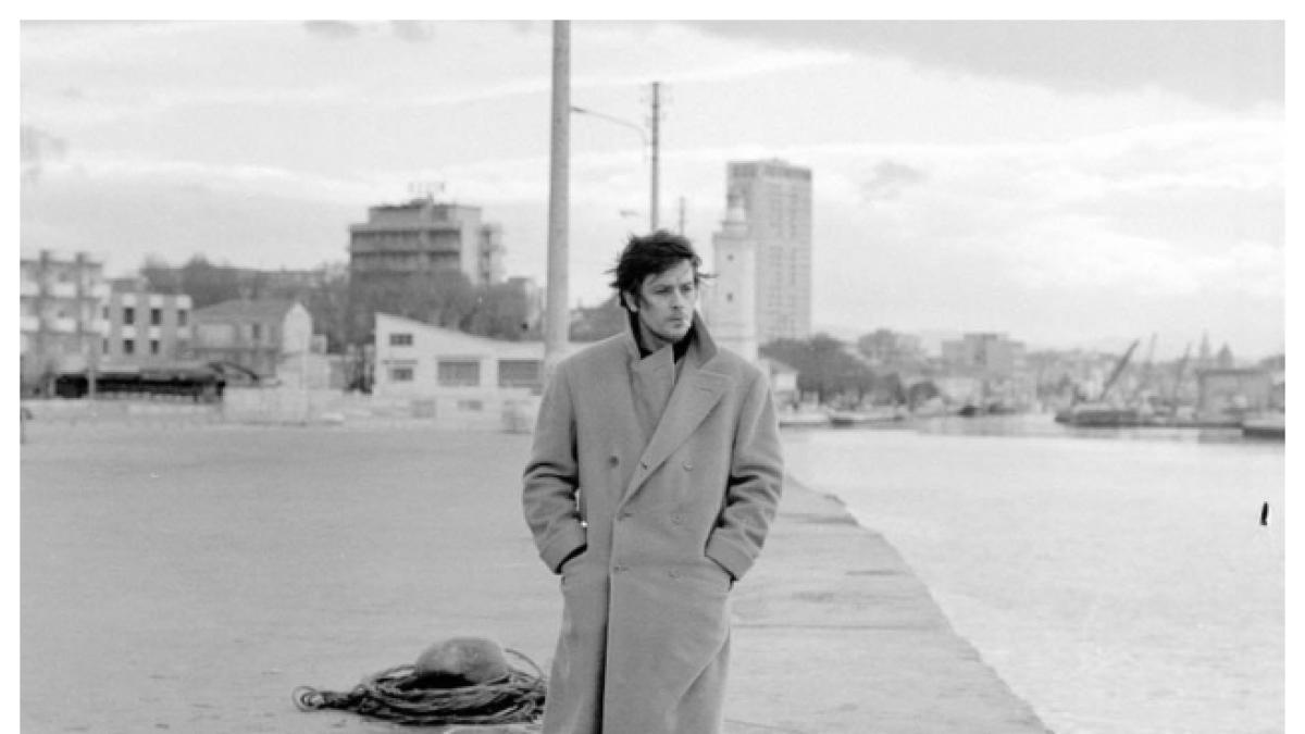 Una sorta di bandiera garrisce al vento: un lungo doppiopetto dentro il quale brillano un paio di occhi azzurri impossibili. Alain Delon attraversa la bruma di Rimini d’inverno, cammina sul molo come un’apparizione. In La prima notte di quiete è Daniele Dominici, professore supplente di Lettere.