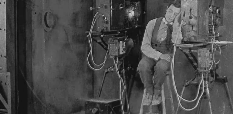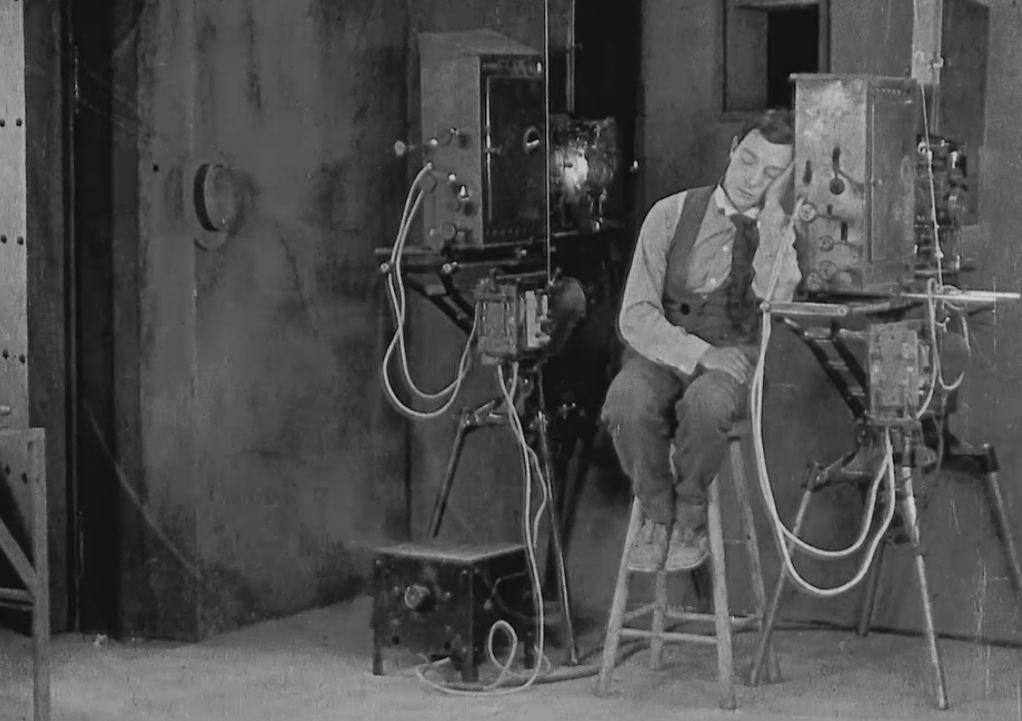 Forse più di Chaplin, però, un altro comico muto americano ha riconosciuto i legami tra sogno e cinema. In Sherlock, Jr. (1924), Buster Keaton interpreta un proiezionista che si addormenta sul lavoro e sogna di entrare nel film come detective. Gli altri personaggi sono incarnati dai suoi conoscenti del mondo reale, ma il concettuale punto cruciale di Sherlock, Jr. arriva mentre Buster si abitua al suo nuovo ambiente cinematografico, apparentemente entrando nello schermo del film e realizzando che può fare il giro del mondo in un batter d’occhio (o, più precisamente, in 1/24 di un secondo). Una serie di rapide immagini lo mostra mentre passa da un vivace incrocio a un ripido precipizio di montagna, da una giungla africana a un deserto arido, il tutto realizzato attraverso rapidi tagli. Sogno e cinema sono letteralmente intrecciati qui; in effetti, dove altro la realtà fisica può sembrare cambiare forma in una frazione di secondo? Come nei sogni, lo spazio e il tempo qui si piegano e si intrecciano, prendono vita e sfilacciano i propri confini. Tutto torna, come dice Fellini: “Parlare di sogni è come parlare di film, poiché il cinema usa il linguaggio dei sogni; gli anni possono passare in un secondo e puoi saltare da un posto all’altro. È un linguaggio fatto di immagini. Ogni oggetto e ogni luce significano qualcosa, come in un sogno”.