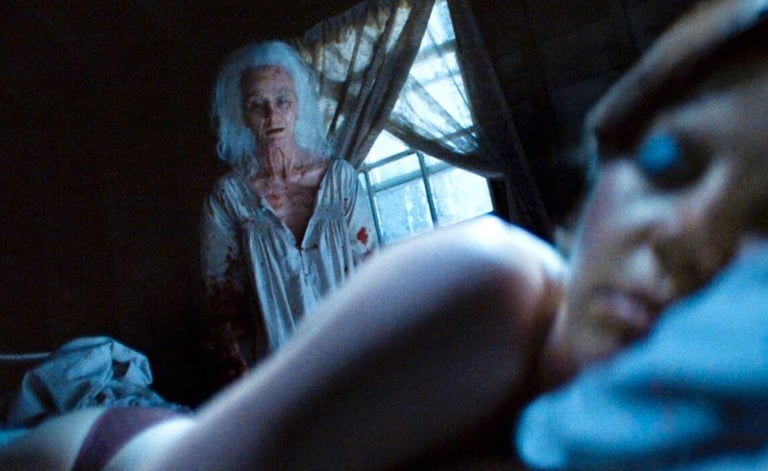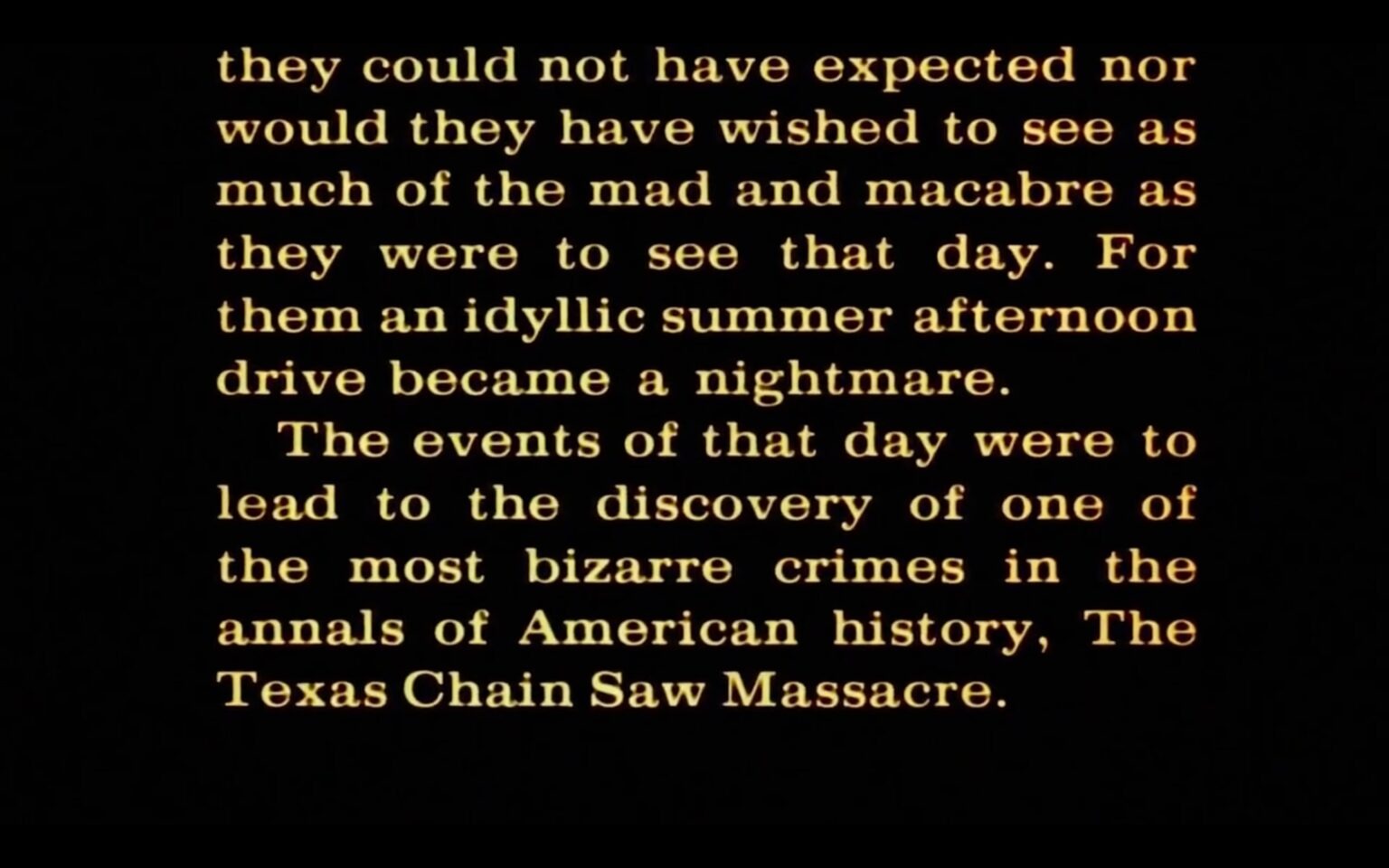 Segue una lenta inquadratura su due cadaveri in avanzato stato di putrefazione accompagnata da una voce radiofonica che descrive alcuni macabri avvenimenti legati ai cimiteri. La scena successiva ai titoli di testa viene ripresa da Ti West, che tuttavia sostituisce l’armadillo morto sul ciglio della strada con una mucca, sulle cui interiora sparse per terra passerà il furgone dei protagonisti. Il furgoncino stesso è un riferimento a Hooper e alla controcultura anni Settanta, e, in entrambi i casi, ci accompagnerà attraverso situazioni ambigue, che ci fanno fin da subito presagire il peggio. Nel caso di Hooper incontriamo un anziano ubriaco che farfuglia qualcosa a proposito di «cose che non vanno raccontate» e, poco dopo, un autostoppista che comincia a parlare di tecniche di macello. Nel caso di West, una volta che i protagonisti arrivano a destinazione in una vecchia fattoria presa in affitto per girare un film porno amatoriale, verranno accolti minacciosamente da un vecchio con un fucile che chiede loro di lasciare stare la moglie, che però vedremo spesso affacciata alla finestra intenta a spiare le riprese.