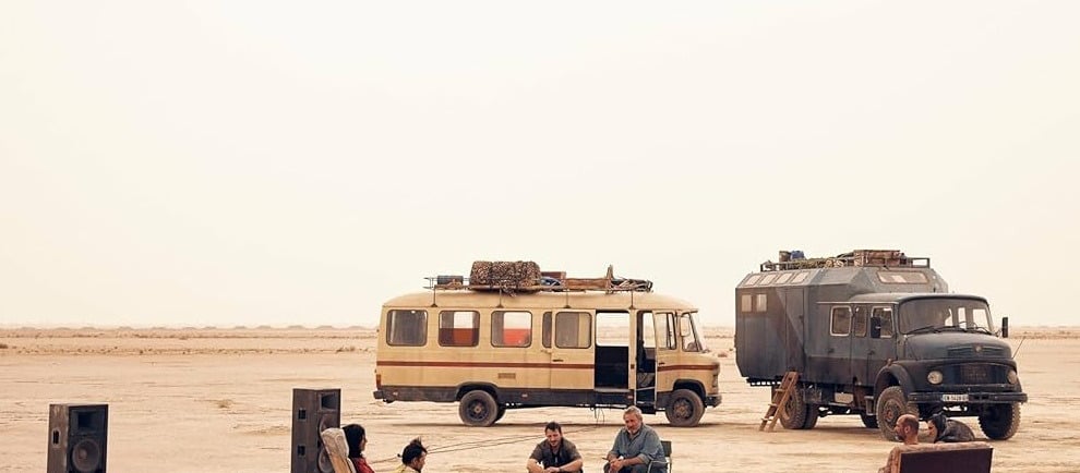 In questo road movie atipico, che sempre più si rarefa e lascia sfaldare la trama che vive di sterminate distese manca l’elemento di vittoria sulla strada che contraddistingue i road movie classici; qui ll deserto marocchino, girato in parte nelle province spagnole di Teruel e Saragozza per ragioni fiscali ma indistinguibile nell'aridità, mastica l'umano e lo lascia agonizzante. O forse è l'ambiente che finalmente si ribella a secoli di dominio coloniale e sottomette finalmente l’uomo bianco che torna, sazio, a prendere di nuovo possesso della terra che ha faticosamente abbandonato. Il mondo di Sirāt è sulle soglie della Terza Guerra Mondiale ma i raver non si curano delle cose mondane, bisogna andare, correre, ballare, sudare. Neanche quando si scontrano con la povertà più assoluta delle file eterne per una tanica di benzina sembrano essere colti da un dubbio, come nuovi mistici la realtà non li tocca.