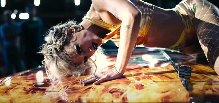 Titane, insomma, non è solo un film su “una donna che scopa con un’auto e ne rimane incinta”, e sono le stesse luci della ribalta, sotto le quali il film si svela, a dircelo.