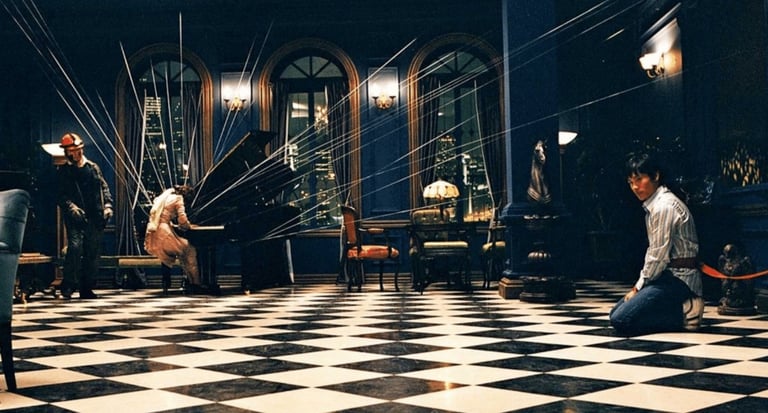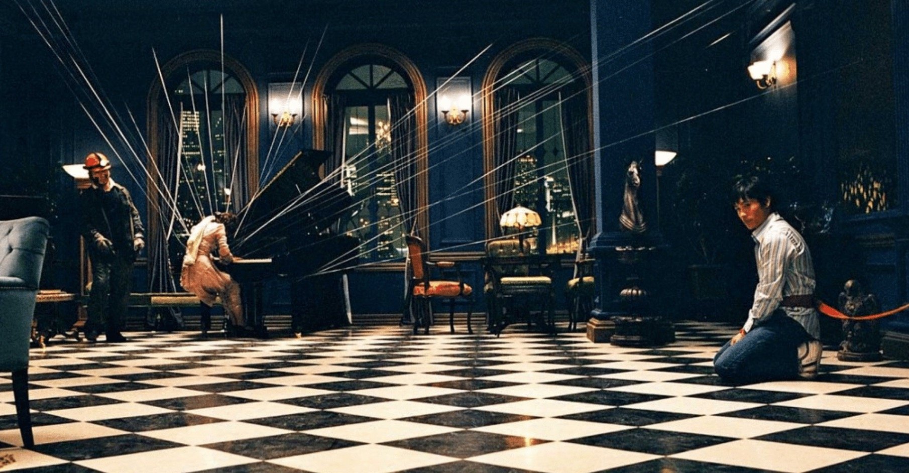 Il fatto che l’interno della casa di Ryu, dove si svolge l’azione, sia costruito come un gigantesco set cinematografico, e di fatto imiti il set precedente dell’ultimo film a cui stava lavorando prima di rientrare in casa, richiama la nostra attenzione sulla meta-testualità del discorso cinematografico. La messa in scena della sofferenza femminile, in cui la moglie è legata al suo pianoforte con fili di ferro che pendono dal soffitto, è una fantasia sadomasochista che sarebbe altrettanto adatta a un film rosa giapponese. Le crepe nella famiglia borghese vengono gradualmente rivelate quando le dita della moglie fungono da merce di scambio tra il regista e l’assalitore. Tuttavia, il vero obiettivo di Park Chan-wook è la classe, piuttosto che la famiglia, come dimostra il fatto che il motivo per cui Ryu viene preso di mira è perché ritenuto troppo gentile nei confronti delle persone che lo circondano. La vera colpa di Ryu è quella di essere nato in una classe privilegiata e di non aver mai dovuto lottare o sforzarsi per ottenere quello che voleva. I risultati di questa disparità diventano chiari nel momento in cui, nel tentativo di dimostrare che quando le persone sono disperate sono disposte a tutto, il fanatico avvia la trasformazione del regista da eroe, a mostro.